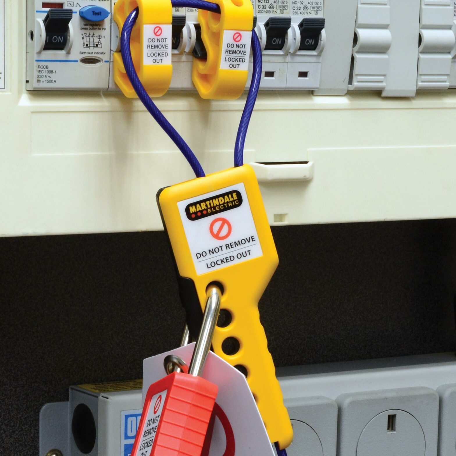 The CABLOK series has been designed for locking off multiple breakers, switches and valves to prevent re-energisation of circuits and systems during maintenance as part of a safe isolation procedure. The flexible multi-stranded steel cable with PVC sheath is easy to thread and can be adjusted to the required length before locking off with a simple squeeze action. The ergonomic designed has a built-in hasp with space for up to six padlocks for when there are multiple operators working on the same system. The CABLOK Series is available with 1m, 3m and 5m cable lengths.