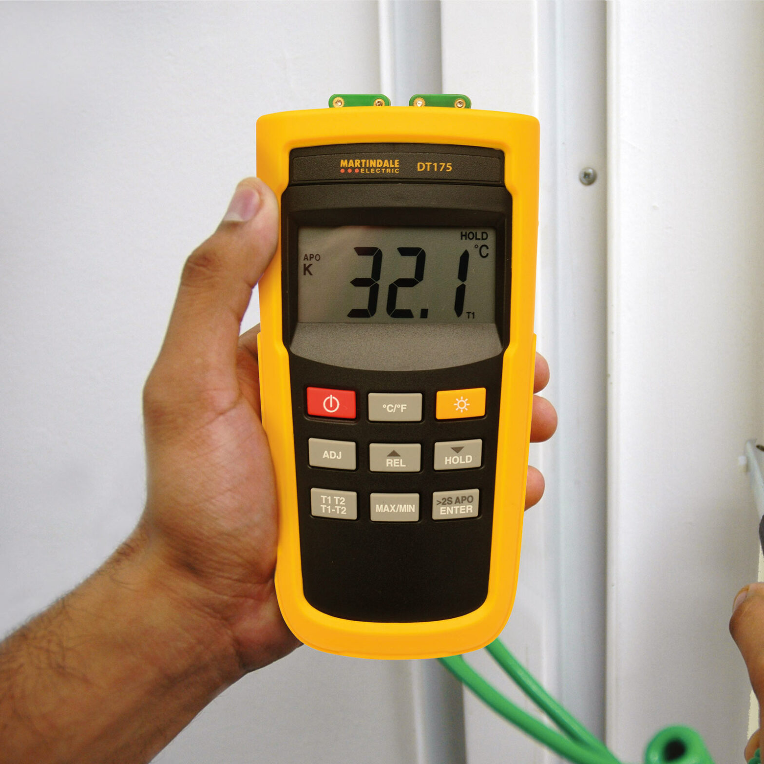 The DT175 is a high-performance dual input K Type digital thermometer enabling the measurement of both input and output temperatures of systems and equipment simultaneously. When set to differential mode, the difference between the two thermocouple readings can be displayed, which is useful for measuring the effectiveness of heating systems.