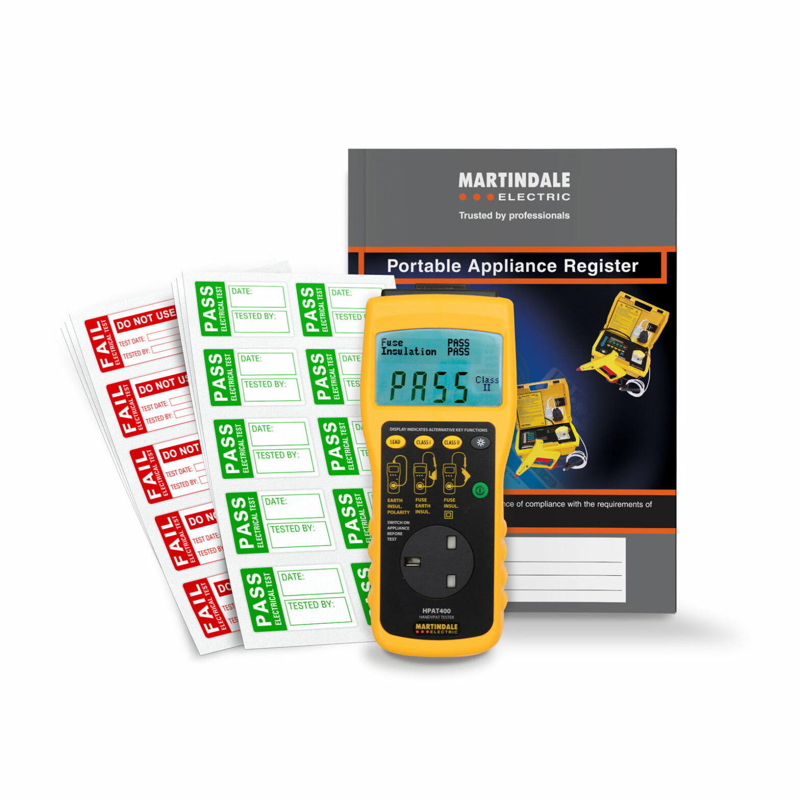 The HPAT600KIT1 PAT starter kit offers great value, in addition to the normal delivery contents of the HPAT400, the comprehensive kit comes with pass and fail labels and a record book