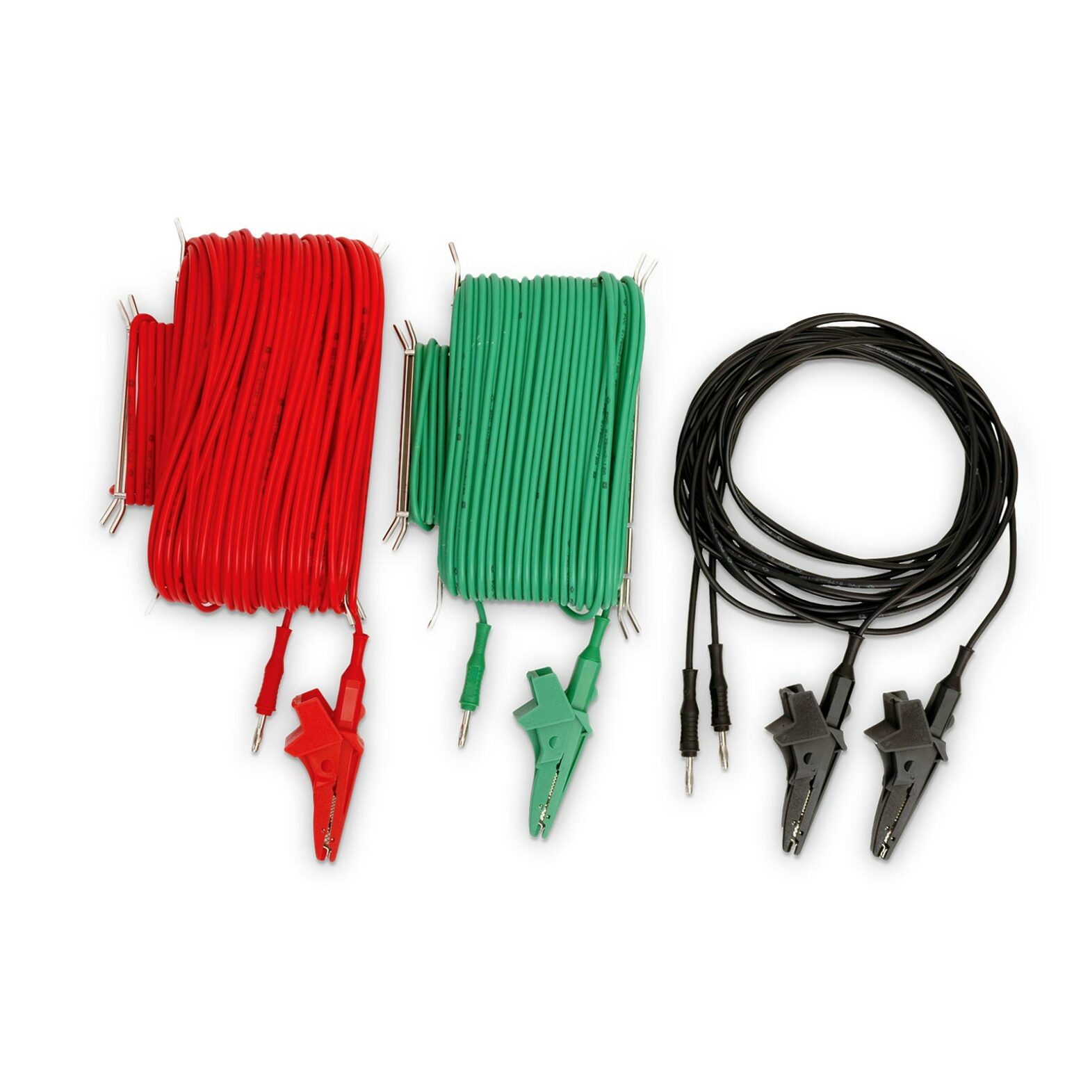 This 3-wire Earth Resistance Test Lead set comprises 1 x 50m red lead, 1 x 30m green lead and 1 x 3m black lead, each terminated with 4mm banana plugs.