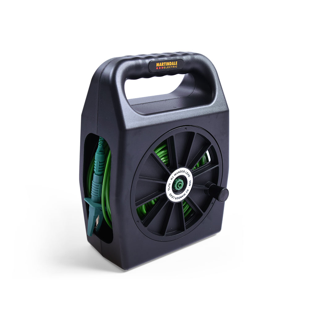 The double insulated PVC lead is housed in a durable reel case which offers excellent protection and prevents the lead from being damaged. The lead outlet is positioned to allow for smooth unreeling and retrieval of the lead, which is important when working over long distances.